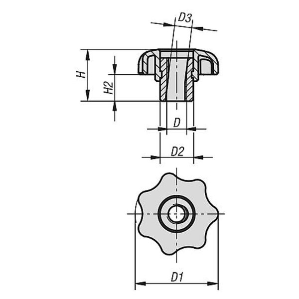 STERNGRIFF MIT SCHNELLSPANNFUNKTION D=M05 D1=25 H=16,6 THERMOPLAST, SCHWARZ, ...