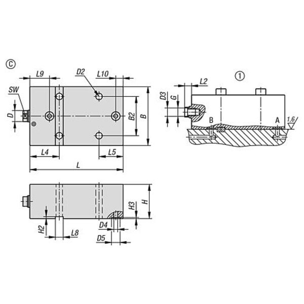 Form C: Breitseite, O-Ring-Flanschanschluss