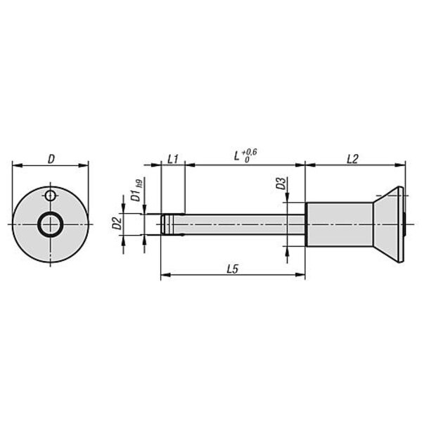 KUGELSPERRBOLZEN MIT PILZGRIFF, D1=10, L=40, L1=8,9, L5=48,9, EDELSTAHL 1.4542, HOHE SCHERFESTIGKEIT,