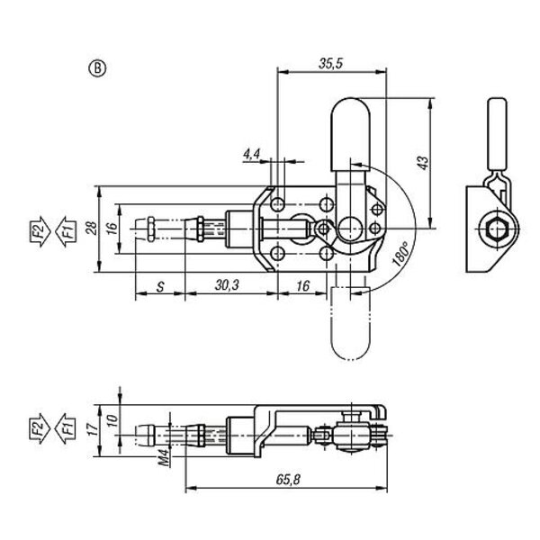 SCHUBSTANGENSPANNER MINI, OHNE KONSOLE, FORM:B, STAHL, KOMP:KUNSTSTOFF ROT
