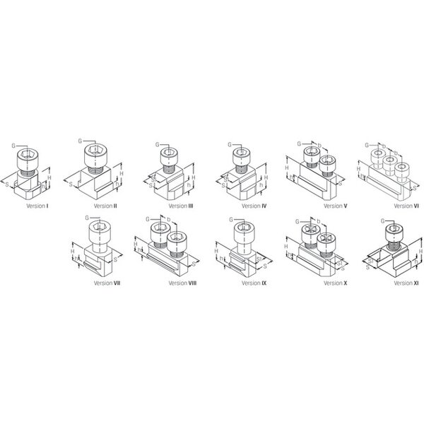 - AusführungNutensteine, vergütet und präzisionsgeschliffen, einschließlich Zylinderschrauben DIN 912-12.9