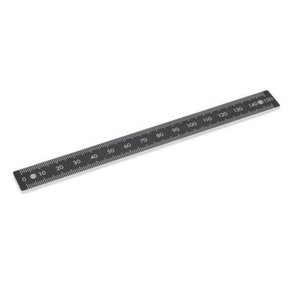 An Maßstäben GN 711.2 lassen sich z. B. Positionen von Verfahrschlitten sehr leicht ablesen. Der schwarze Hintergrund bildet einen hohen Kontrast zu den naturfarbenen Ziffern und Skalen und blendet nicht.