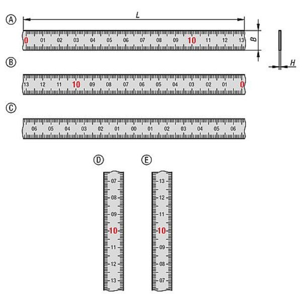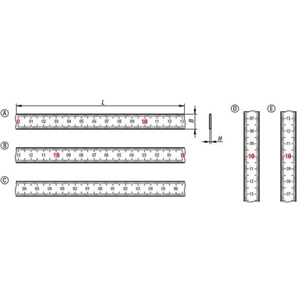 MAßBAND HORIZONTAL SELBSTKLEBEND, FORM:A NULLPUNKT LINKS, SKALIERUNG BEIDSEIT...