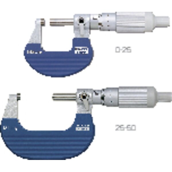 - Ausführungmit kombinierter Gefühlsratsche, für Einhandbedienung, höhere Sicherheit bei Bedienung mit einer Hand, Skalentrommel und Skalenhülse mattverchromt, Ebenheit: 0,6 µm, Parallelität: 2 µm, Messfläche hartmetallbestückt, Messspindel: Steigung 0,5 mm mit Klemmeinrichtung, Messkraft 5-10 N