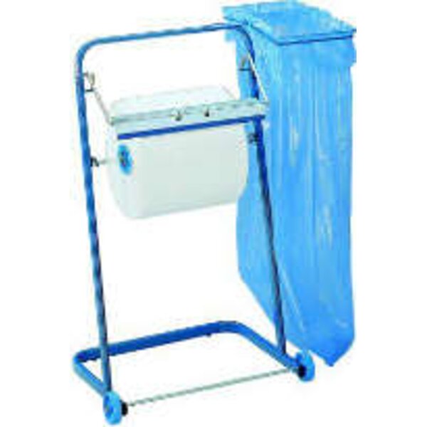 -Bodenständer, mobil Dieser Bodenständer eignet sich für Rollen bis 400 mm Breite. Er ist mit Rädern und Abfallsackhalter ausgestattet.