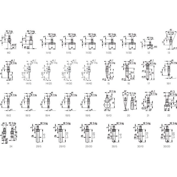 - für Messwerkzeuge mit Aufnahmegewinde M 2,5 zum Erstellen von Sondermessmitteln