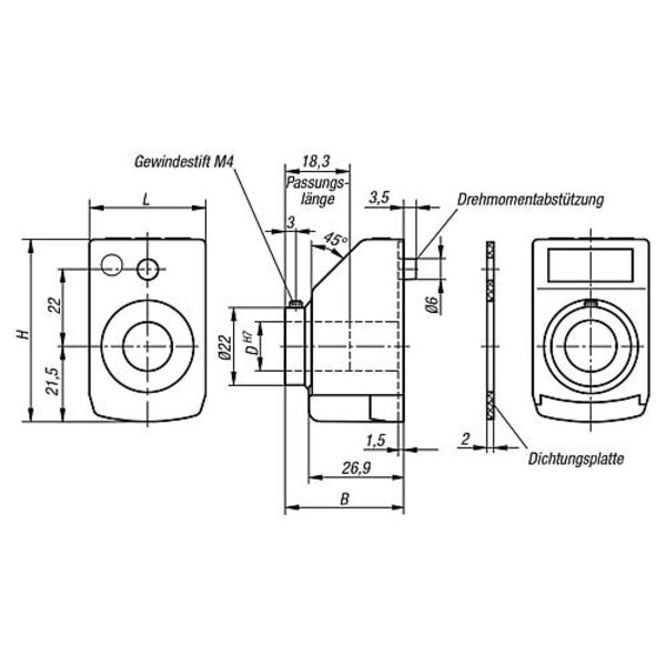 Werkstoff:Gehäuse Kunststoff.Hohlwelle Stahl.Sichtfenster LCD-Anzeige.Gewindestift Stahl. Ausführung:Hohlwelle brüniert.Gewindestift schwarz. Bestellbeispiel nicht programmiert:nlm 21923-12(Positionsanzeiger mit Einbaulage 1, Farbe schwarz) Bestellbeispiel programmiert:nlm 21923-0200021120(siehe Bestellbeispiel auf der nächsten Seite) Hinweis:Die elektronischen Positionsanzeiger bieten weiterreichende Möglichkeiten gegenüber den mechanischen Positionsanzeigern, denn sie bilden Winkel ebenso ab wie ungewöhnliche Spindelsteigungen und registrieren dabei jeden Bruchteil einer Spindelverstellung.* Freie Programmierbarkeit der Parameter mit der Programmier-Software 21922-09. Merkmale:– Anzeigewerte und Kommastelle frei programmierbar– Linear- oder Winkelmodus– Funktionstaste für Nullsetzung– Funktionstaste für Umschaltung zwischen Absolutmaß und Kettenmaß– Programmierung eines Offsetwerts direkt am Gerät– einfacher Batteriewechsel Zubehör:– Reduzierhülsen 21940– Programmier-Software 21922-09 Technische Daten:– LCD-Display mit 5 Stellen– Ziffernhöhe ca. 8 mm– Anzeigebereich von -19999 ... 99999– Hohlwellen-Ø 14 H7 mm– Arbeitstemperatur -10 °C bis +60 °C– Lagertemperatur -30 °C bis +80 °C– Drehzahl max. 600 U/min– Batterie Lithium Knopfzelle 3V, Typ CR2032. Lebensdauer ca. 2 Jahre– Vibrationsfestigkeit nach DIN IEC 68-2-6 10 g / (5 ... 150 Hz), 20 g / (100 ... 2000 Hz)– Schockfestigkeit nach DIN IEC 68-2-27 30 g / 15 ms– EMV DIN EN 61000-4-2; DIN EN 61000-4-4– Schutzart IP 51