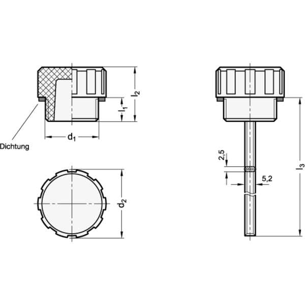 Bei Einfülldeckeln GN 548.1 sind ab Gewinde G½ die Dichtungen in einem radialen und planseitigen Einstich eingebettet. Dadurch ist die Dichtung nicht verlierbar und kann beim Anziehen nicht herausgequetscht werden.