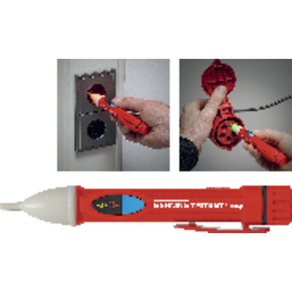 - Drehfeldrichtungsprüfung in Drehstromnetzen (grün/rote LED-Prüfspitze für rechtes/linkes Drehfeld)