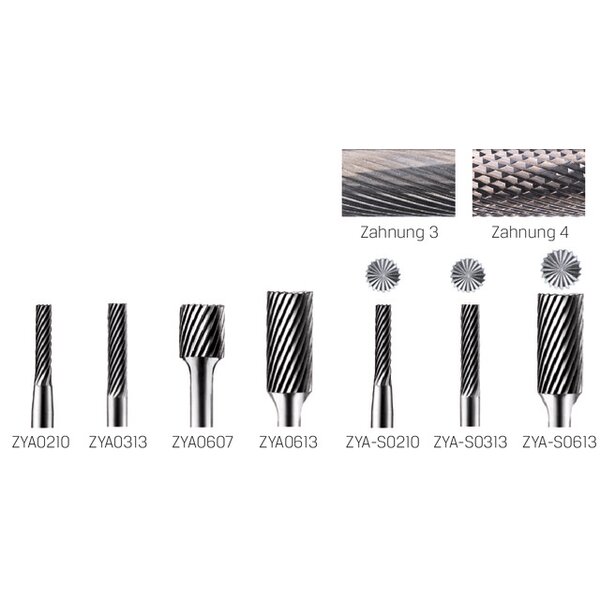 HM-Kleinfrässtift PRETEC, Zylinderform Standardverzahnung Z=3