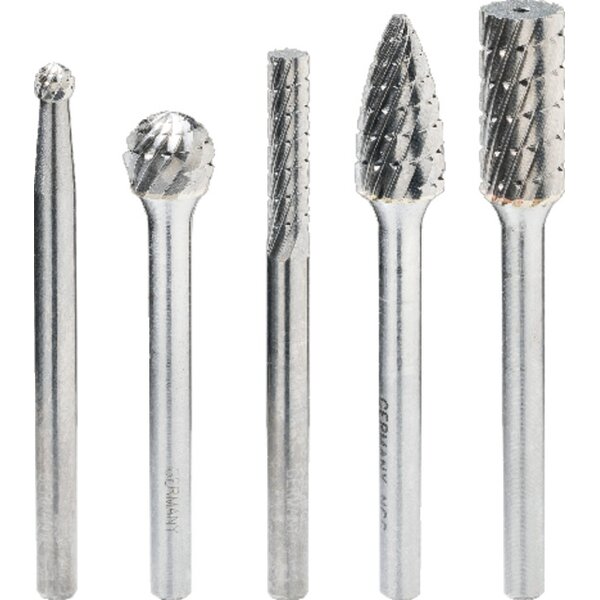 - Ausführungfür handgeführte oder stationäre Antriebsmaschinen, nach DIN 8032, universeller Einsatz in der Metallbearbeitung auf fast allen Werkstoffen, zum Entgraten, Verrunden, Anfasen, Egalisieren oder zum Bearbeiten von Konturen, Schaft-Ø 3 mm