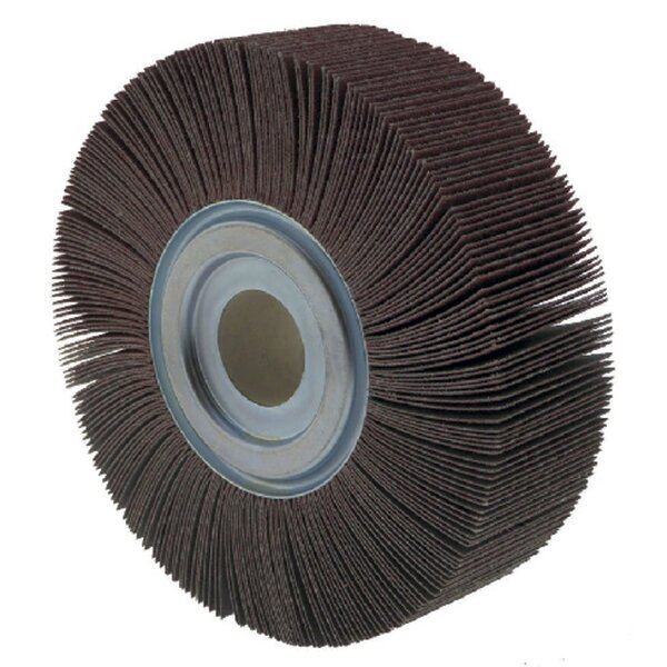 - Ausführungdichte, radial um den Kern angeordnete Schleifgewebelamellen, gute Anpassung an das Werkstück, beidseitige Aussparungen für exaktes Arbeiten in Eckbereichen durch versenkte Spannflansche