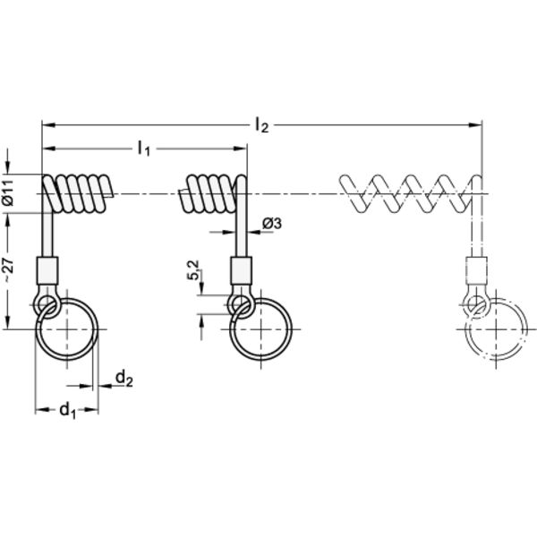 Spiral-Halteseile GN 111.4 werden in Verbindung mit leichgewichtigen Teilen wie z.B. Steckbolzen und Kugelsperrbolzen eingesetzt.
