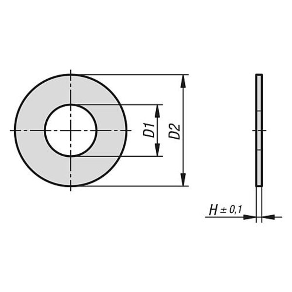 KIPP Passscheibe DIN988, D1=10, D=16, S=0,2, Stahl blank