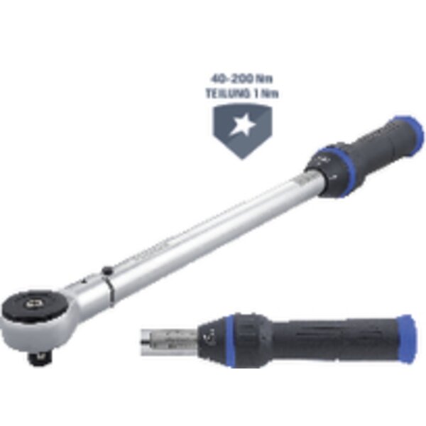 - Ausführungmit Feinzahn-Umschaltknarre, Klicksignal beim Erreichen des gewünschten Drehmomentes, Auslösegenauigkeit ± 3 %