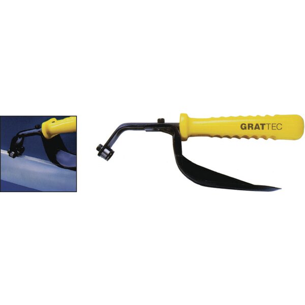 - Ausführungzum beidseitigen Entgraten von Blechteilen mit Stärke 0-12 mm, Kunststoffgriff mit Handschutz, mit zwei HSS Schneidscheiben GT-N80