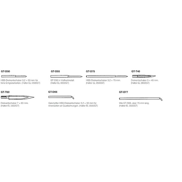 - Ausführung: HSS-Dreikantschaber 3,2 × 75 mm für feine Entgratarbeiten. Passt in den Halter EL 0500GT