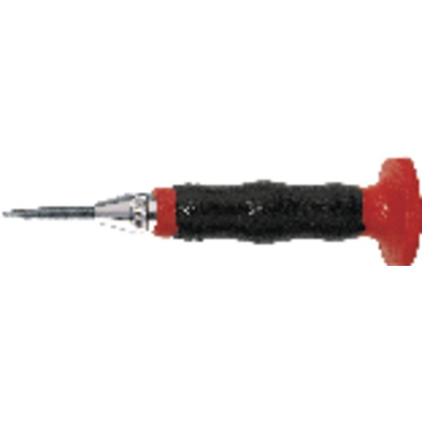 - Ausführung- mit auswechselbarer Spitze, Schaft gerändelt- Körner immer gespannt- durch einfaches Drücken mit der Hand wird der Schlag (ca. 28 kp) ausgelöst- Schlagstärke an der Rändelschraube einzustellen