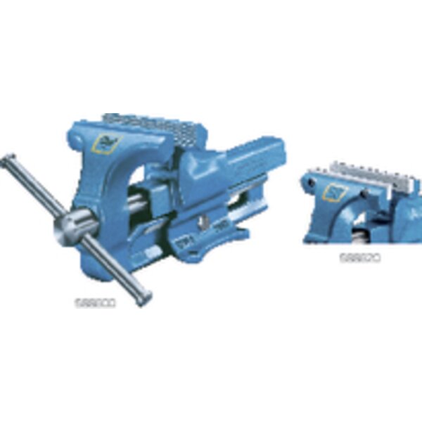 - Ausführungganz aus Stahl, geschmiedet, nach vorn öffnend, mit angeschmiedeten, gehärteten Rohrspannbacken, große Stabilität durch kräftige, zentrisch angeordnete Spindel, hohe und optimal verteilte Spannkraft, nachstellbare, sehr gut gegen Beschädigung und Verschmutzung geschützte Prismenführung, große, allseitig bearbeitete Führungsflächen, geschützte und bearbeitete Präzisionsspindellagerung, schnelles Öffnen und Schließen durch zweigängige Trapezgewindespindel, große Tiefspannmöglichkeit durch kompakte Abmessung, oberflächengehärtete und gefräste Spannbackenflächen, mit verstärktem Ambossansatz für Richtarbeiten