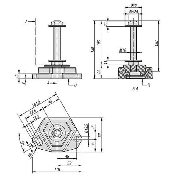NORELEM Maschinenfüße Aluminium mit Schwingungsdämpfung anschraubbar