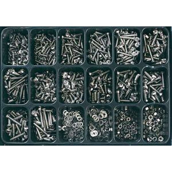- Inhalt: ca. 1240 Teile DIN 966 A2: 5x12; 5x16; 5x20; 5x25; 5x30; 5x35; 5x40; 6x12; 6x16; 6x20; 6x25; 6x30; 6x35; 6x40 DIN 125 A2: 5,3; 6,4 DIN 934 A2: M5; M6
