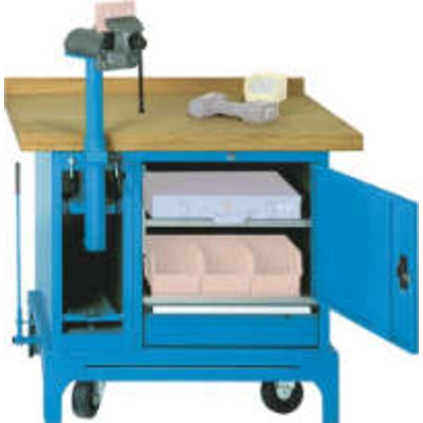 - Arbeitshöhe: 850 mm Schraubstock In Arbeitsstellung stabil und vibrationsfrei mit der Werkbank verbunden. Mit wenigen Handgriffen in den Unterbau versenkbar.