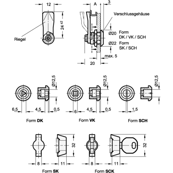 GANTER MINI-Verriegelung mit Dreikant