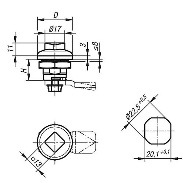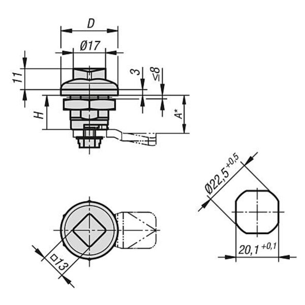 KIPP Drehriegel im Hygienic Design mit Vierkant, SW=13