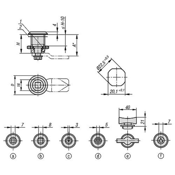 *Das Maß A ergibt sich aus der Kombination von Drehriegel und Zunge und wird bei den passenden Zungen angezeigt.
