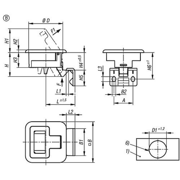 SCHNAPPVERSCHLUSS MIT GRIFF, KLAPPBAR, FORM:B NICHT ABSCHLIEßBAR, S=2-7, PC/A...