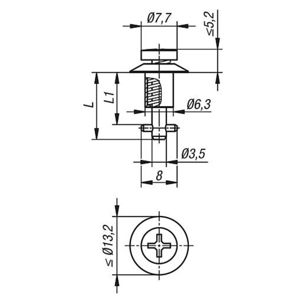 1/4 DREHVERSCHLUSS KREUZSCHLITZKOPF, STAHL VERZINKT, L1=26,65