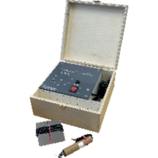 - Transformator im Holzkasten, mit Kabel und Stecker