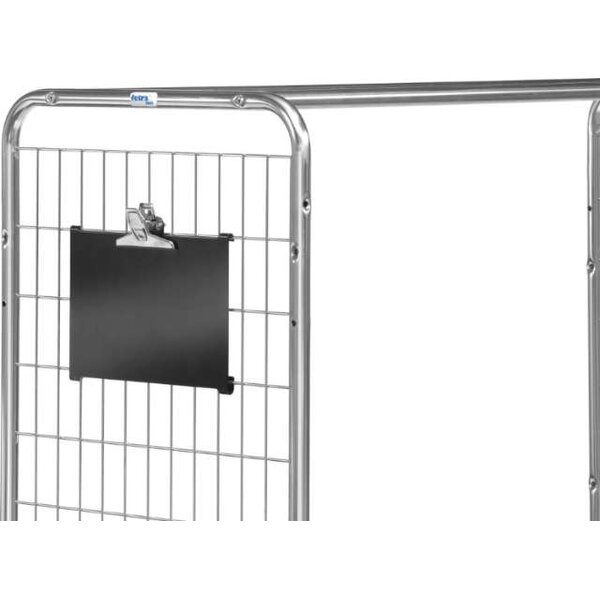 -Kennzeichnungstafel für Kommissionierwagen Die Stahlblech-Kennzeichnungstafel hat eine Papierklammer, ist an der Stirnseite einhängbar und mittels Kreide beschreibbar.