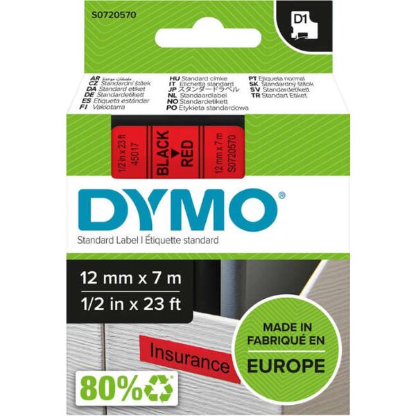 Schriftband DYMO, D1 45017 schwarz/rot 12mmx7m DYMO