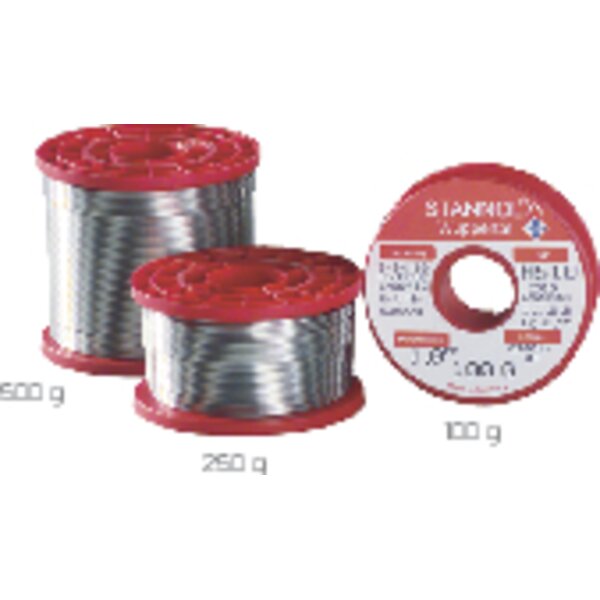 - Ausführungmit halogenaktiviertem Naturharz-Flussmittel, nicht korrosiv auf NE-Metalle, schnell fließend, Flussmittelart: ROM 1, Flussmittelgehalt: Standard 2,5 Gew. % ± 0,3 %, Halogengehalt: 0,9 %