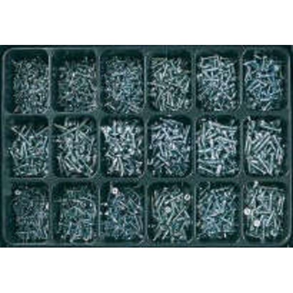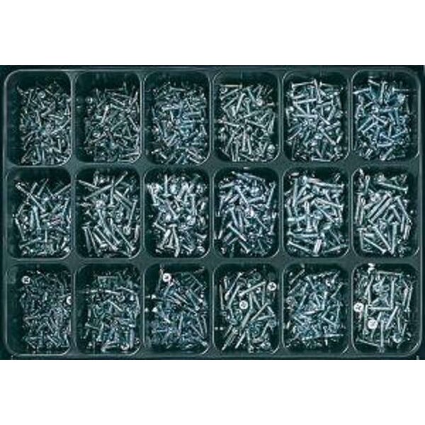 - Inhalt: ca. 2000 Teile Form N: 3,5x13; 3,5x16; 3,9x13; 3,9x16; 3,9x19; 4,2x16; 4,2x19; 4,2x25; 4,8x16; 4,8x19; 4,8x22; 4,8x25 Form P: 3,5x13; 3,9x16; 3,9x19; 3,9x25; 4,2x16; 4,2x25