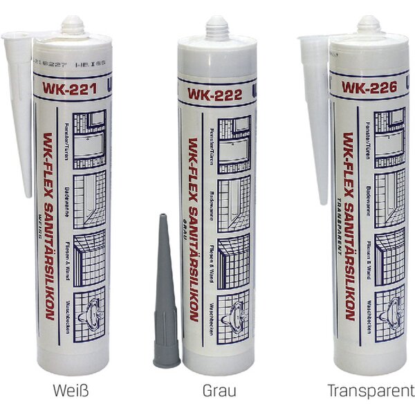 - Ausführunggebrauchsfertiger Kleb- und Dichtstoff auf Silikonbasis, acetatvernetzend, haftstark, fungizid ausgerüstet, dauerelastisch und witterungsbeständig, feuchtraum- und alterungsbeständig, kennzeichnungsfrei, Temperaturbeständigkeit: -50 °C bis +120 °C, Verarbeitungstemperatur: +5 °C bis +40 °C