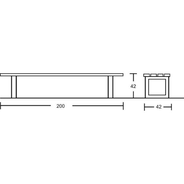 -Hockerbank, Modell 17 Die robuste 4-Sitzer-Ruhebank ohne Rückenlehne ist für den Außenbereich.