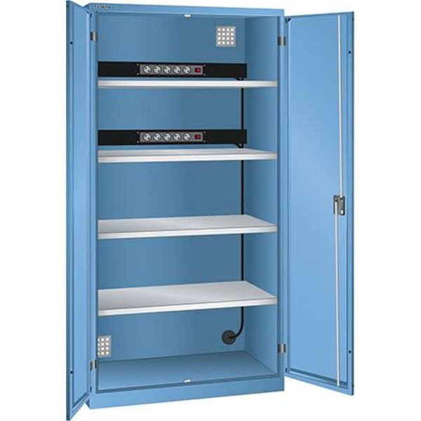Akku-Ladeschrank LISTA, B1000xT580xH1950mm RAL 5012,Vollblechtür 2x5-fach Leiste,4Böden