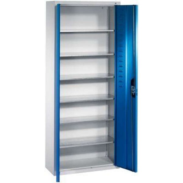 Lager-Regalschrank C+P, B700xT300xH1690 mm RAL 7035/5012 mit Türen 6 Fachböden CP