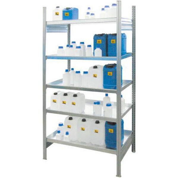 - Beliebig erweiterbar durch Grund- und Anbaufelder GHS-Kategorie: 1-4 Ausstattung: Regal mit 1 Auffangwanne (entsprechend WHG) als 1. Lagerebene und 4 Wannenböden Auffangvolumen: