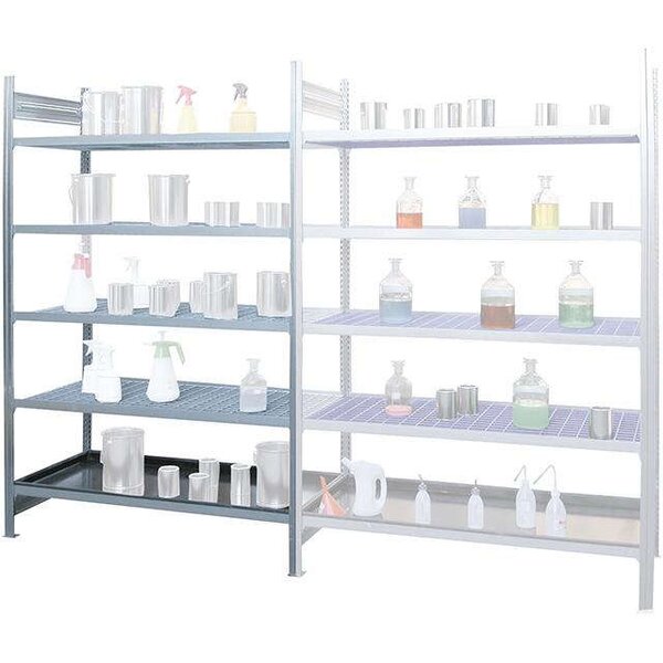 -Kleingebinde-Gefahrstoffregal mit 1 Wannenboden (PE) und 4 Gitterrostböden (PE) Diese Kleingebinde-Gefahrstoffregale sind beidseitig nutzbar. Geeignet sind sie zur vorschriftsmäßigen Lagerung von wassergefährdenden Flüssigkeiten, Säuren und Laugen.