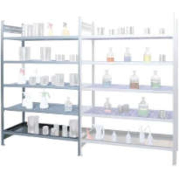 - Ausführung: Regal mit 1 Wannenboden unten und 4 Gitterrostebenen (PE)