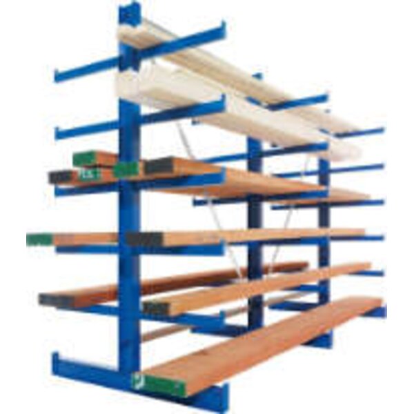 Kragarmregal META REGALBAU, L Grundfeld B1000xT2x600xH2500 mm doppelseitig RAL 5010 2x4 Arme Traglast 140kg
