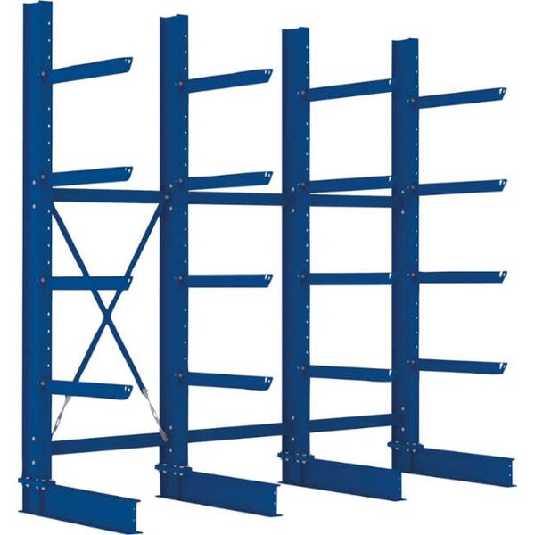 Kragarmregal META REGALBAU, H 3 Felder B3090xT800xH3000 mm einseitig RAL 5010 5 Ebenen Traglast 2520kg
