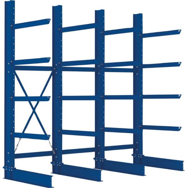 Kragarmregal META REGALBAU, H 3 Felder B3090xT1000xH3000 mm einseitig RAL 5010 5 Ebenen Traglast 2020kg