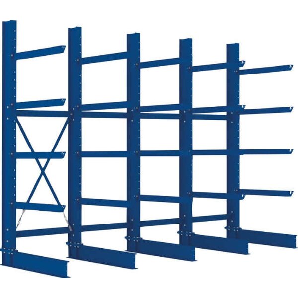 Kragarmregal META REGALBAU, H 4 Felder B4090xT1000xH3000 mm einseitig RAL 5010 5 Ebenen Traglast 2525kg