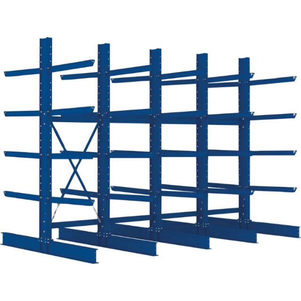 Kragarmregal META REGALBAU, Heavy B4090xT2x1000xH3000 mm doppelseitig RAL 5010 5 Ebenen Traglast 2525kg