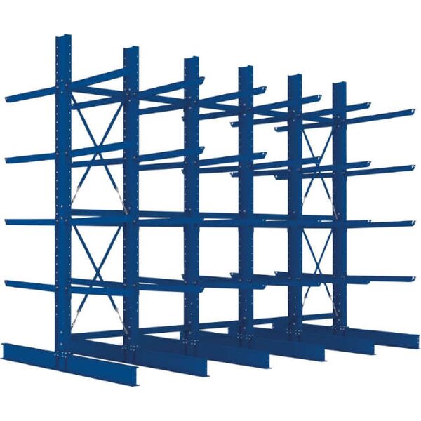 Kragarmregal META REGALBAU, Heavy B5100xT2x1250xH4000 mm doppelseitig RAL 5010 5 Ebenen Traglast 2400kg