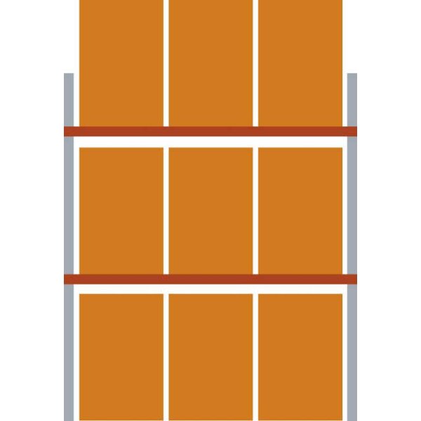-Komplettregal mit 3 Lagerebenen Diese Palettenregale eignen sich für leichte bis mittelschwere Belastung. Die geschlossenen Kastenprofile garantieren eine hohe Stabilität und die Ständer bestehen aus kaltverformten Profilen, die bauseits mit der Ausfachung verschraubt werden. Eine Längs- oder Quereinlagerung ist möglich.